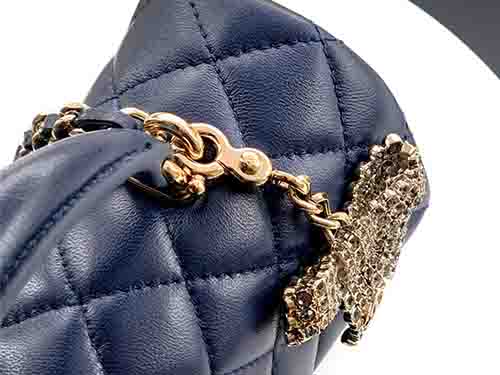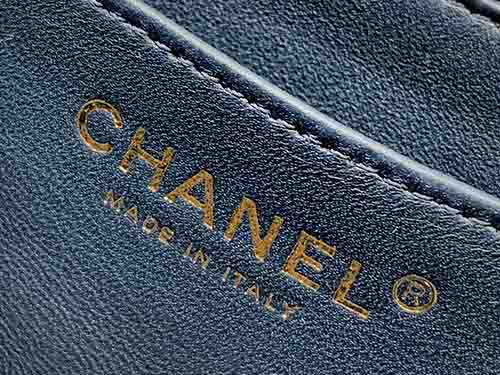 تمنح حقيبة شانيل Classic Flap Mini 2431 باللون الأزرق الداكن عمقاً وأناقة للتصميم الأيقوني للدار. صُنعت من جلد الحمل الإيطالي المبطن، وتمزج بين الطابع الكلاسيكي لحقيبة شانيل فلاب وأناقة المقبض العلوي. مستوحاة من توازن Mini Flap وCoco Handle، تجمع بين الرقي الكلاسيكي والمرونة العصرية. يضيف تفصيل الفراشة المرصعة بالكريستال والإكسسوارات الذهبية الفاتحة لمسة فاخرة.