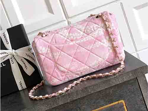 تعكس حقيبة شانيل 25M كوكو بيتش كلاسيك فلاب باللون الوردي روح شانيل الأنيقة بلمسة صيفية مريحة. صُنعت من قماش متين وخفيف مع الحفاظ على التصميم الكلاسيكي CF. يضيف شعار شانيل المزدوج CC باللون الذهبي الفاتح لمسة راقية ومنعشة.