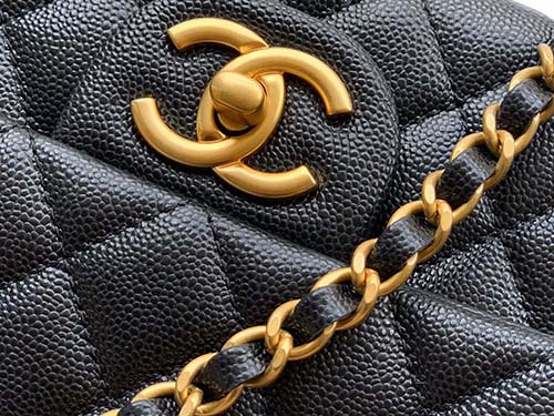 تقدم حقيبة Chanel CF Handle من مجموعة Chanel 25B بلون Jet Black تفسيراً أنيقاً للتصميم الكلاسيكي الشهير من شانيل. صُنعت الحقيبة من جلد الكافيار الفاخر الذي يجمع بين المتانة والفخامة.