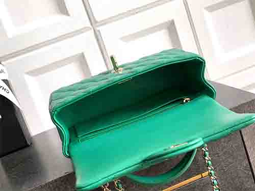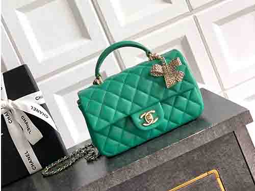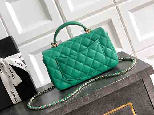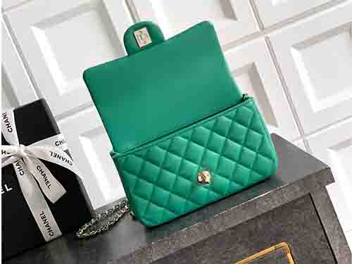 The 2431 Chanel Classic Flap Mini Top Handle in dark green introduces a deep, refined tone to an iconic Chanel silhouette. Crafted from premium Italian square-quilted lambskin, this elegant design merges the timeless sophistication of the Chanel Classic Flap with the structured femininity of a top handle. Inspired by the harmony between the Mini Flap and Coco Handle aesthetics, it delivers a balanced expression of classic elegance and relaxed charm.