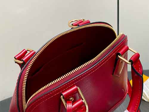 Inspired by the original 1934 design, this timeless Alma BB from the Back to School collection is crafted in grained Epi leather. Smooth leather handles and refined trims highlight the Maison’s heritage, while the iconic key bell and signature padlock add classic character. Finished with polished gold-tone hardware, the bag offers multiple carry options and a secure interior pocket to keep valuables organized.