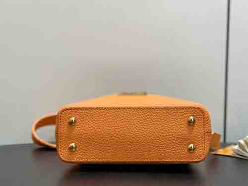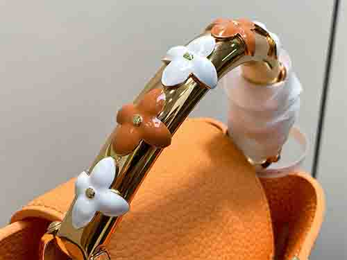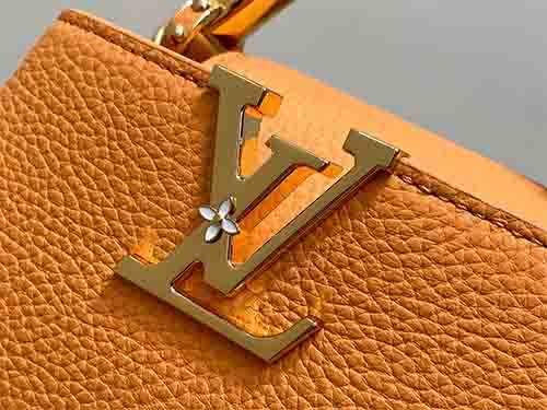 This Capucines Mini handbag elevates the Maison’s iconic silhouette with refined Monogram flower detailing integrated into the top handle. Crafted from full-grain Taurillon leather, the compact structure highlights the sculptural LV signature with delicate precision, bringing radiant elegance to a soft and feminine design. Its thoughtfully sized interior accommodates daily essentials with ease, making it a refined companion from day to evening.