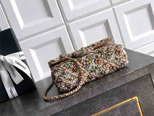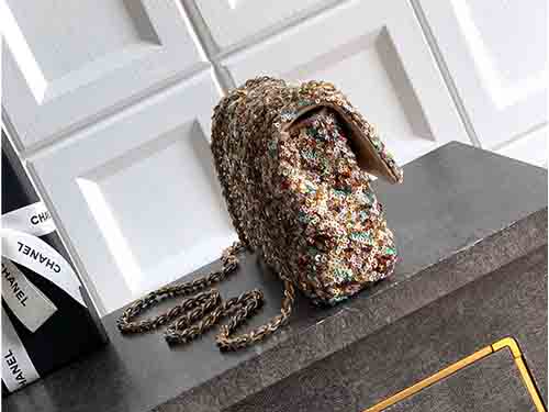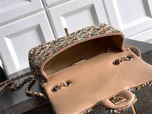 The Chanel 20cm Champagne Gold Sequin Embroidered CF Flap Bag embodies couture craftsmanship and radiant glamour. Featuring intricate atelier-style embroidery with dense shimmering sequins and floral detailing, this Chanel icon glows with every movement. The classic CF silhouette preserves Chanel’s timeless structure, while the champagne gold tone elevates it into a refined evening statement. Elegant, bold, and collectible, this Chanel piece is designed to be treasured for a lifetime.