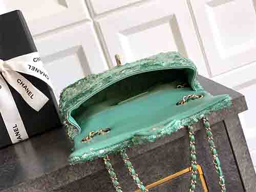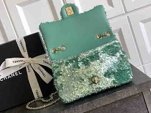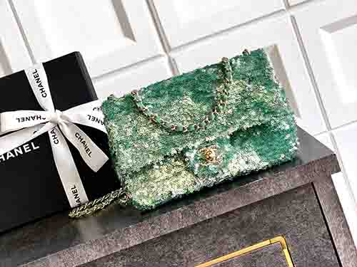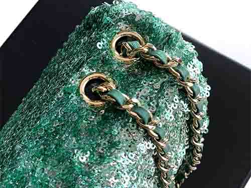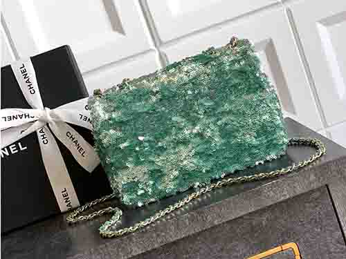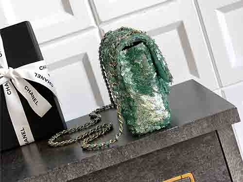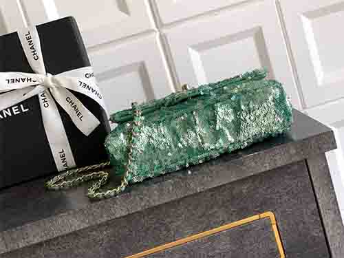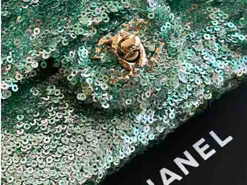 The Chanel 20cm Green Sequin CF Flap Bag is a radiant statement piece designed to captivate. Covered in dense shimmering sequins, this Chanel icon reflects light from every angle, blending elegance with bold modern glamour. The classic CF silhouette ensures timeless structure, while the vivid green tone adds seasonal freshness. Perfect as an evening bag or standout fashion accessory, this Chanel piece is designed to be treasured for years.