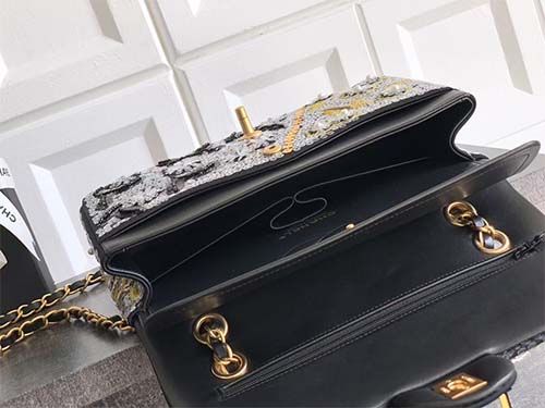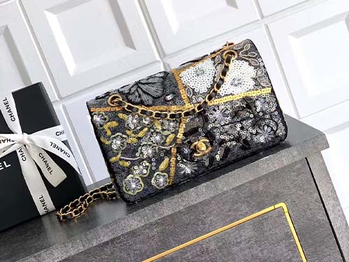 The Chanel 25cm Collector Series Hand-Embroidered CF Flap Bag represents the pinnacle of Chanel craftsmanship. Meticulously handcrafted with intricate sequin embroidery, metal accents, glass pearls, and layered embellishments, this Chanel piece radiates opulence from every angle. Built on the iconic CF silhouette, it preserves Chanel’s timeless elegance while elevating it into true collector status. Rare and limited, this Chanel evening masterpiece is designed for those who appreciate artistry