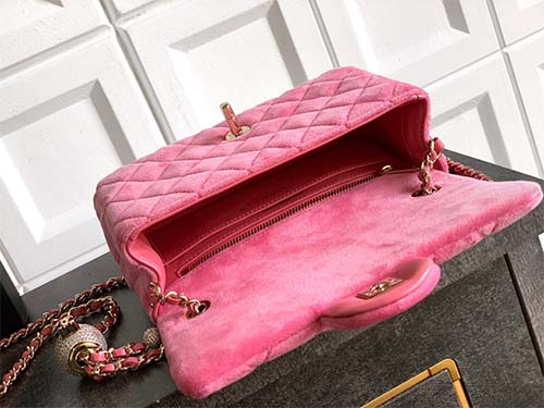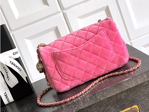 The Chanel 25B Velvet Crystal Ball CF Bag in soft pink delivers a refined interpretation of the iconic Chanel flap silhouette. Crafted from luxurious velvet and adorned with delicate crystal sphere accents, this Chanel bag perfectly blends vintage elegance with contemporary fashion appeal. The upgraded full steel hardware enhances durability while maintaining the timeless Chanel aesthetic. The sparkling crystal ball detail adds a subtle shimmer that elevates the bag’s luxurious presence, making