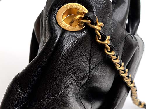 Hardware: Gold-tone chain and logo