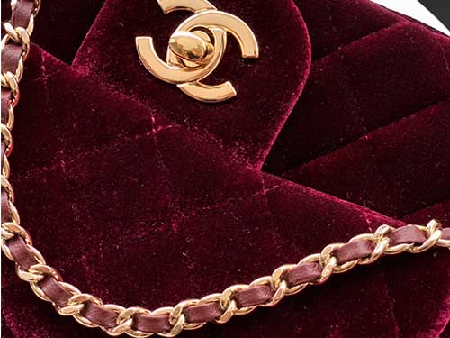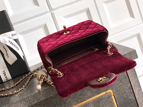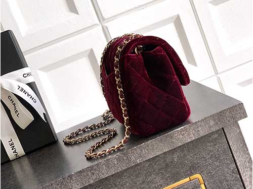 • Style: Chanel seasonal velvet mini classic flap bag