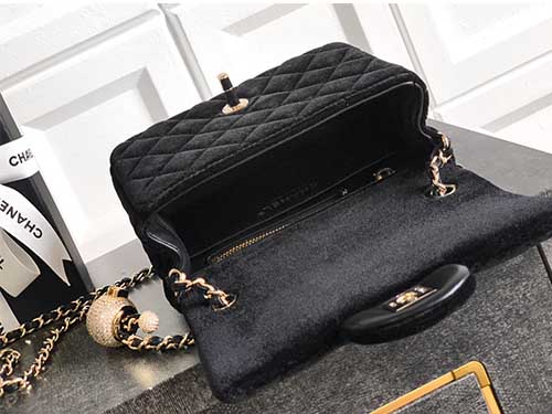 • Style: Chanel seasonal velvet mini classic flap bag