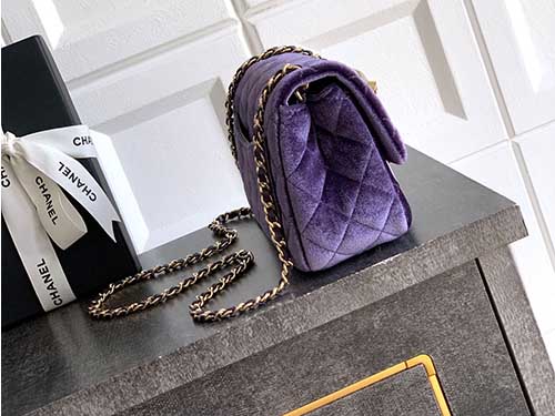 The Chanel Velvet Diamond Ball Mini Flap Bag from the Chanel 25B collection presents a luxurious seasonal interpretation of the iconic Chanel Classic Flap design. Crafted from soft velvet in a sophisticated purple tone, this Chanel bag blends timeless elegance with modern glamour. The quilted velvet body highlights the signature Chanel aesthetic, while the iconic CC turn-lock closure preserves the heritage of Chanel craftsmanship. A sparkling crystal diamond ball charm attached to the chain