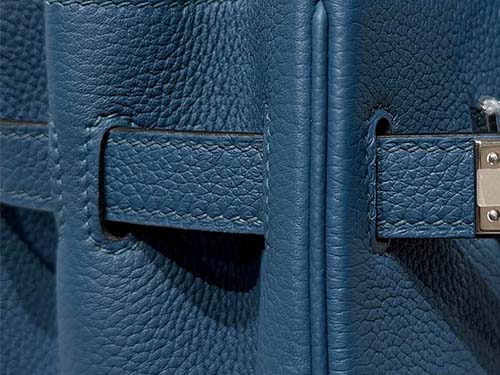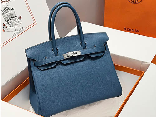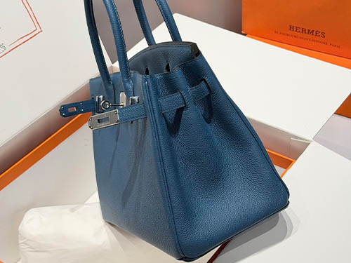 This Birkin in Deep Blue features a muted cool-toned blue with a refined grey undertone, crafted in Togo leather with silver hardware. As part of the Color Spectrum Birkin series, it highlights a calm, structured visual presence, ideal for modern wholesale markets seeking understated luxury and urban sophistication.