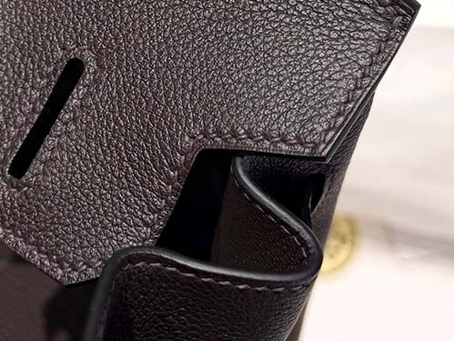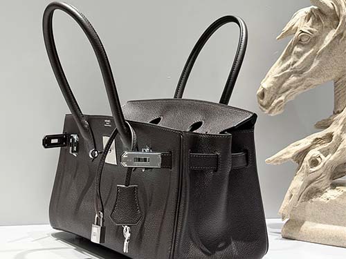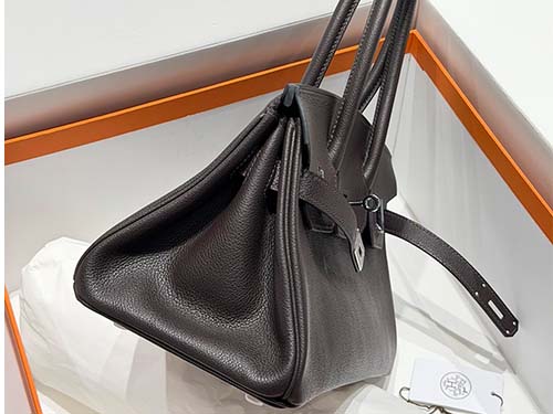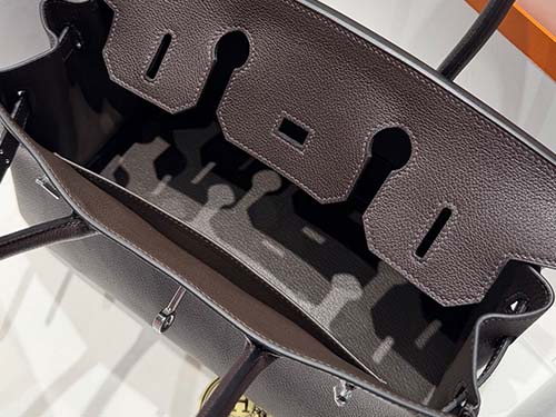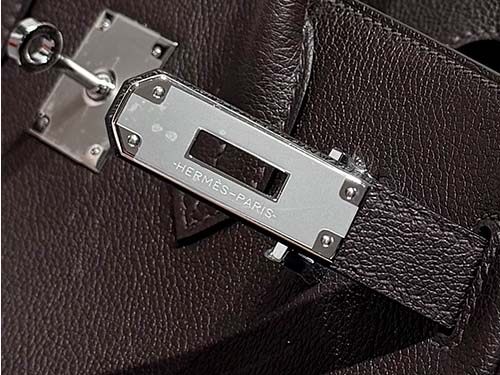 The Hermès Birkin style shoulder bag in Ebene Evercolor leather represents understated luxury with a deep, refined tone. This rich dark brown shade, close to black, offers more depth and dimension than standard black, making it a preferred choice for those who favor subtle sophistication. Crafted from durable Evercolor calfskin, the leather maintains a structured silhouette while providing excellent resistance to daily wear. The silver hardware enhances its clean and modern appearance.