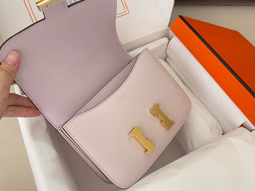 The Hermès Constance 19 in blush pink (nude pink) is defined by its soft tone, structured silhouette, and understated elegance within luxury handbag collections.