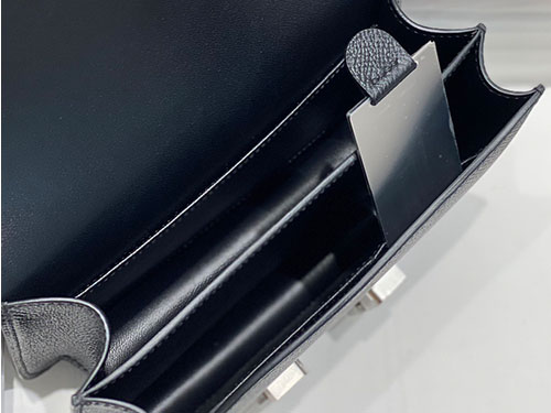 The silver hardware reduces warmth and creates a cooler, sharper visual contrast. Compared to gold hardware, this version appears more minimal, controlled, and modern, aligning with a clean and rational aesthetic.