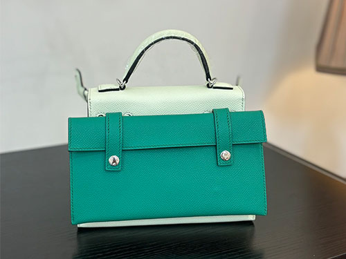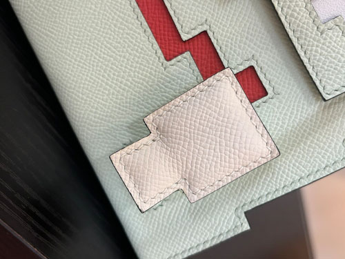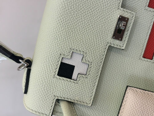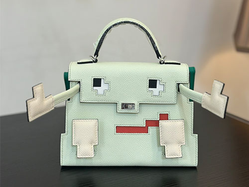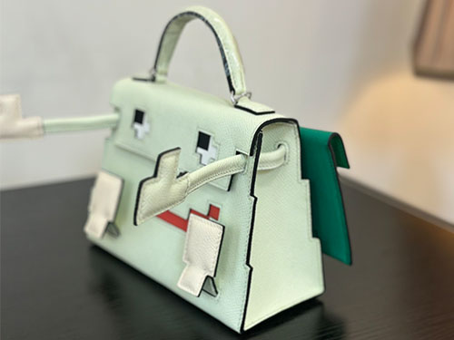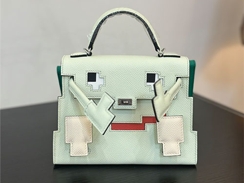 Hermès Kelly Doll Mosaic Pixel Edition 19cm Epsom Leather Mint Green with White and Red Contrast Grass Green Back Panel Silver Hardware Structured Luxury Wholesale
