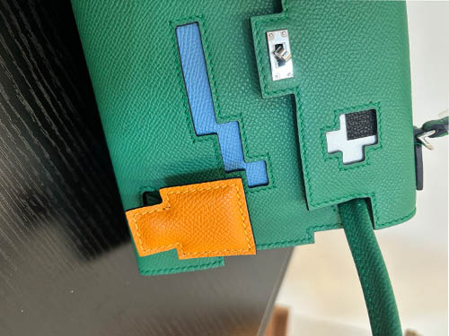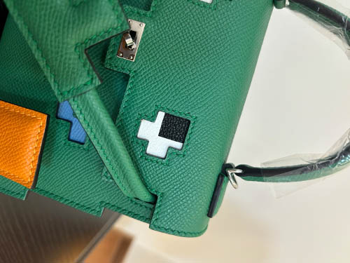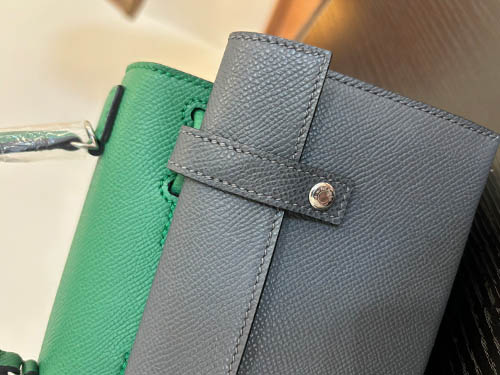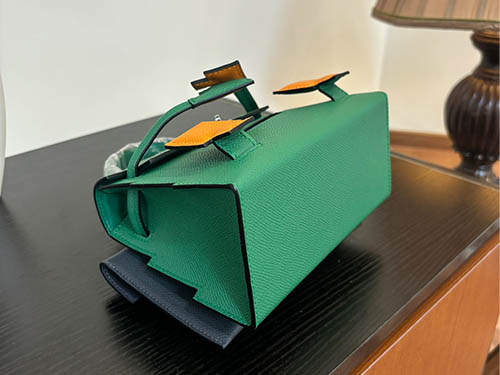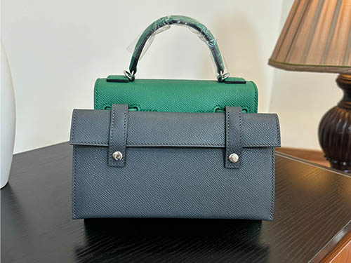 Crafted from imported Epsom leather with hand-applied wax stitching, the bag maintains shape stability, durability, and a refined surface texture. The 19cm size supports flexible presentation across boutique settings and curated retail spaces.