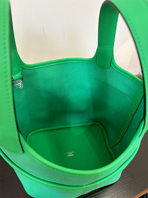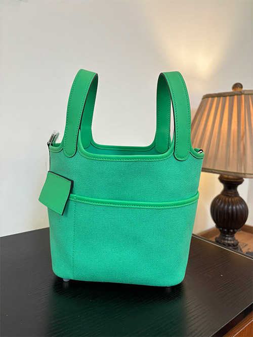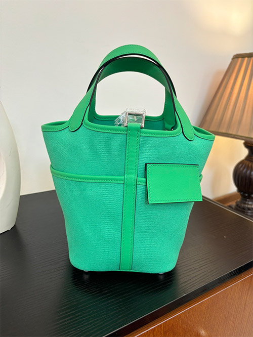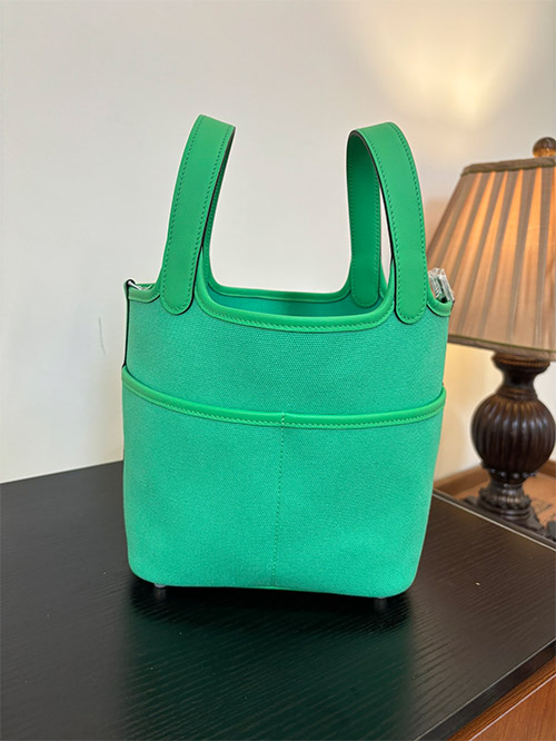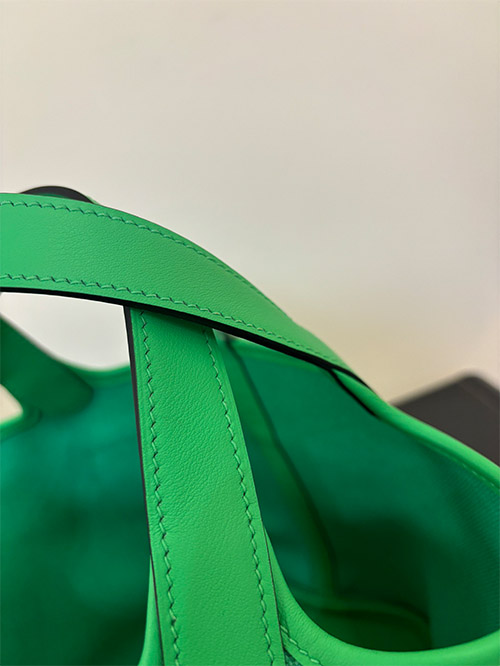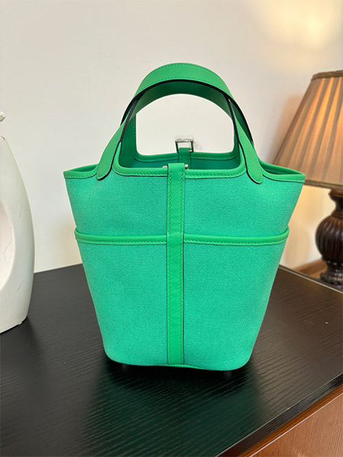 Hermès Picotin Lock Cargo 18 combines structured canvas with Swift leather trim, creating a relaxed yet refined silhouette suitable for everyday use. The grass green color introduces a bold, high-saturation tone that stands out immediately within any assortment.