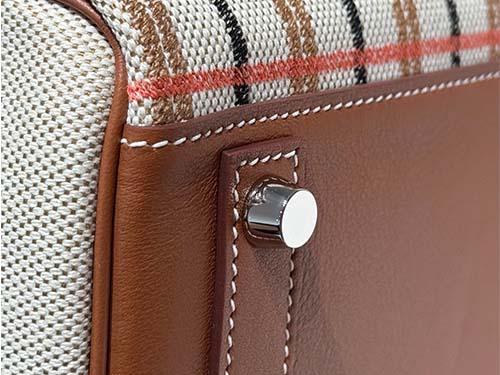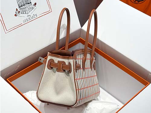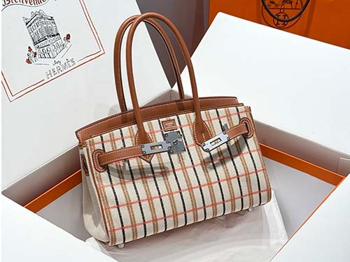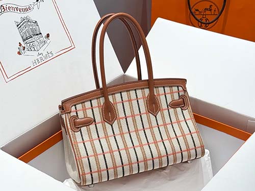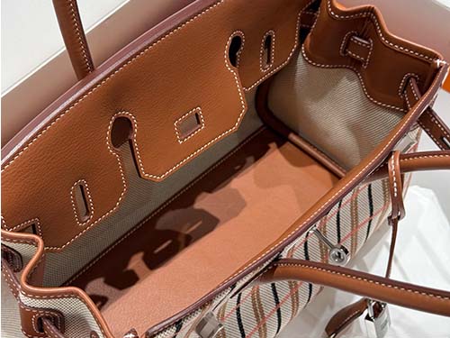 Hermès Shoulder Birkin 29cm Canvas–Leather Hybrid Mocha Check Canvas Silver Hardware Top Handle Bag