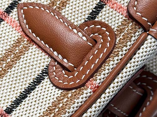A refined Shoulder Birkin featuring mocha Swift leather paired with classic check-pattern canvas. The compact 29cm proportion, with extended width and reduced height, enhances elegance while maintaining functionality. Finished with silver hardware, it balances heritage aesthetics with modern clarity.