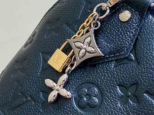 Inspired by the enchanting glow of winter nights, this LV Rocky Mountains edition Alma BB stands out with its distinctive “Shimmering Ink” pearl blue hue. Crafted from Monogram Empreinte leather embossed with the House’s iconic lettering, the bag is enhanced by a subtle pearlescent finish that catches the light beautifully. A detachable tricolor metal charm adds a playful yet refined accent and can be styled on other accessories.
