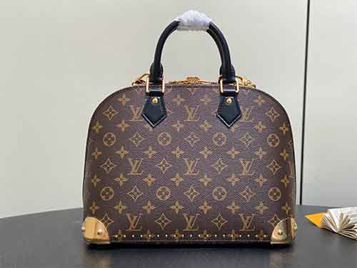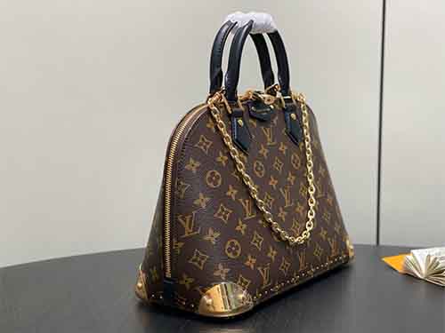 The Alma Trunk Small bag reinterprets a Louis Vuitton icon through the lens of the House’s legendary travel heritage. Crafted from Monogram coated canvas with refined cowhide leather trim, this contemporary design features gleaming metal corner protectors and a signature trunk-inspired padlock accented with a leather insert. Elegant yet versatile, the bag can be carried by hand or worn over the shoulder with its removable chain, making it a refined statement for both day and evening occasions.