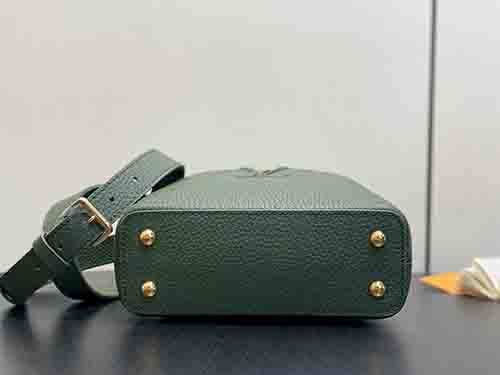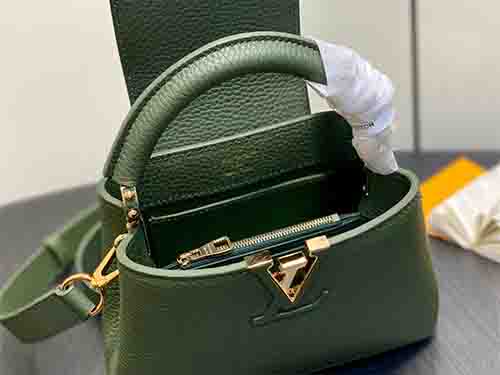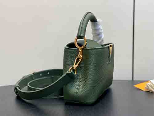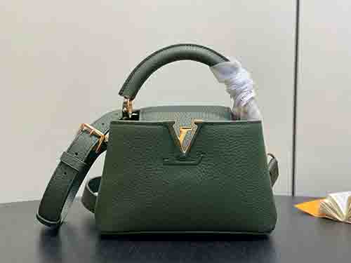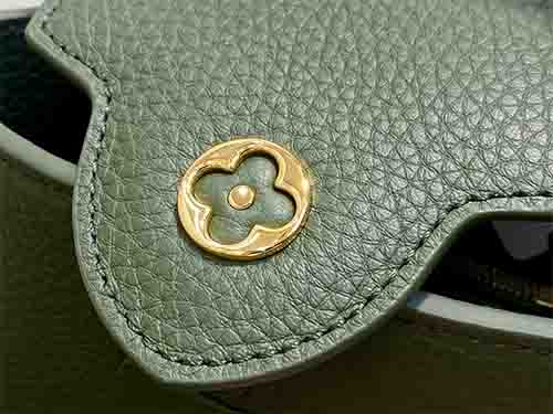First introduced in 2013, the Capucines bag takes its name from Rue des Capucines in Paris, where Louis Vuitton opened its first store in 1854. This Mini edition is crafted from full-grain Taurillon leather and finished with a refined flap design. The exterior features blooming Monogram floral accents, while the interior reveals leather-wrapped LV initials, creating a subtle dialogue between elegance and heritage. Lightweight and versatile, it is designed for effortless day-to-night wear.