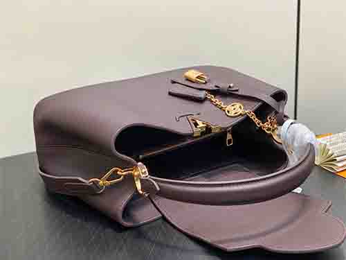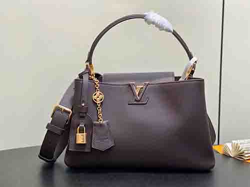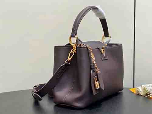 The Capucines Souple Medium offers a refined interpretation of the Maison’s iconic silhouette. Crafted from smooth calf leather, this elegant design showcases signature brand elements including a leather key bell and polished padlock. Its generous interior provides ample space for daily essentials, while the adjustable shoulder strap ensures versatile carrying options. Combining understated luxury with modern practicality, this Souple edition is designed for effortless everyday sophistication.