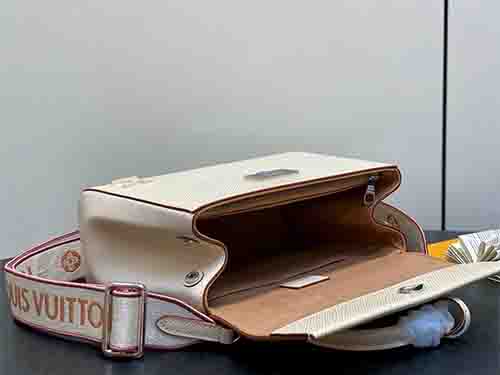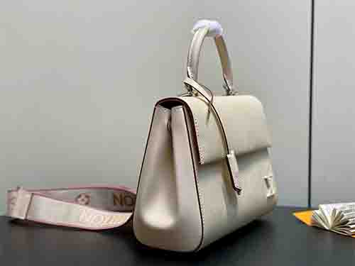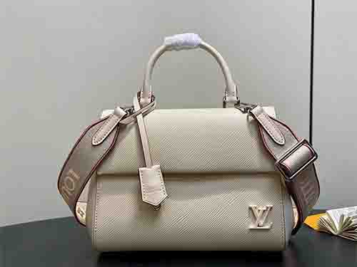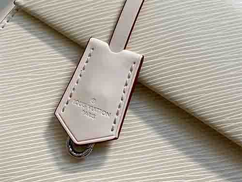 The Louis Vuitton Cluny MM in white Epi leather combines structured elegance with modern versatility. Crafted from textured Epi leather, this refined top-handle silhouette is enhanced by a reversible jacquard shoulder strap. One side features bold Louis Vuitton lettering, while the reverse showcases subtle Monogram floral motifs. Finished with a smooth resin LV signature and contrast lining, the Cluny MM transitions effortlessly from polished daytime sophistication to elevated evening styling.