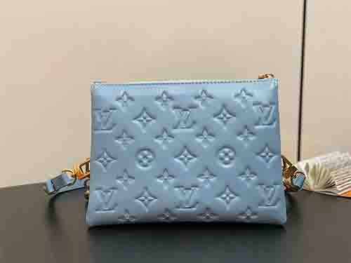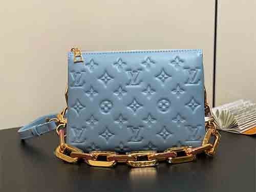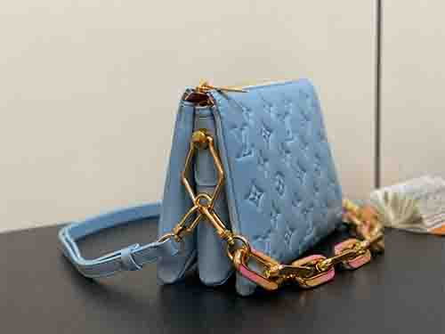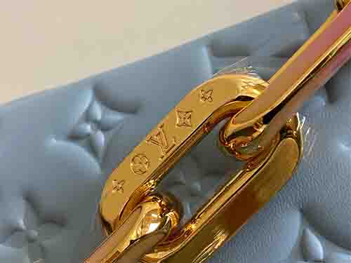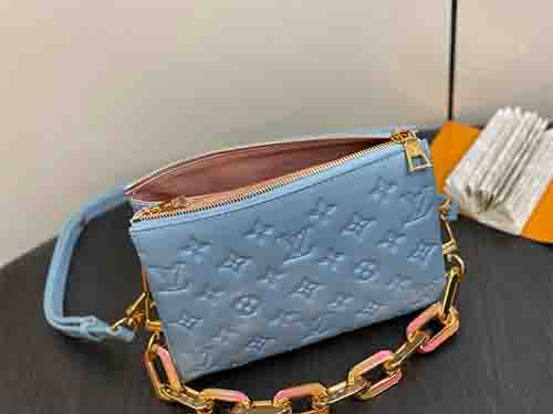 The Coussin BB bag reimagines minimalist design with a bold, contemporary edge. Crafted from plush Monogram-embossed lambskin leather, its cushion-like silhouette delivers a soft yet structured look. Versatile carry options allow it to be worn crossbody with a strap, styled as a chain baguette, or tucked neatly under the arm for effortless urban elegance.