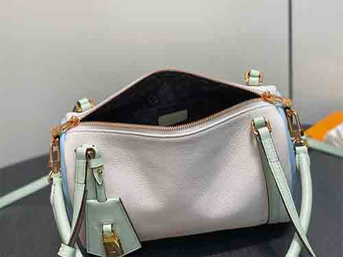 The Express Small Bag is a refined urban essential inspired by Louis Vuitton’s iconic Keepall travel bag. Crafted from smooth, supple calfskin leather, it features Monogram-trimmed edges and a Monogram-lined interior that subtly reflects the House’s travel heritage. Polished metal hardware, along with the signature leather key holder and padlock, highlights the bag’s trunk-inspired DNA. Its compact proportions offer practical space for daily essentials,