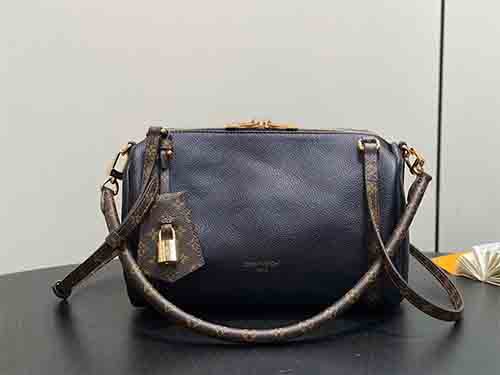 The Express Small handbag is a refined urban essential inspired by Louis Vuitton’s iconic Keepall travel bag. Crafted from supple, finely grained calf leather, it reflects the House’s enduring travel heritage through elegant proportions and meticulous detailing. Monogram-patterned leather trims and lining highlight the brand’s signature codes, while polished metal hardware, a detachable shoulder strap, and the iconic key bell with padlock complete the design.