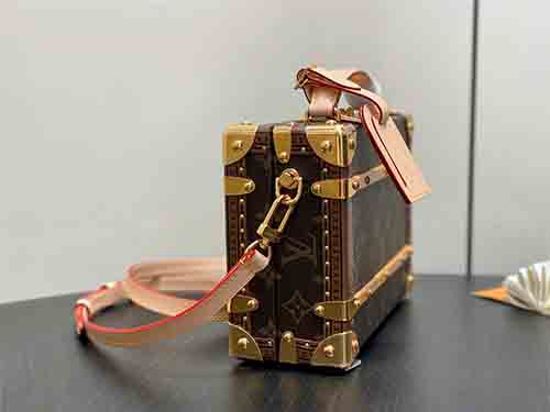Inspired by Louis Vuitton’s legendary trunk-making heritage, the Handle Trunk bag reinterprets classic travel codes in a refined, modern silhouette. Crafted from iconic Monogram canvas, this structured box-style bag features polished metal corners, reinforced edges, and a signature top handle, making it an elegant companion for both daytime and evening looks.