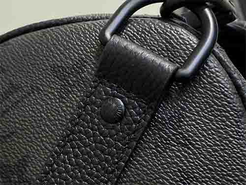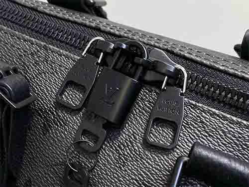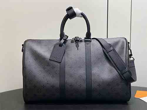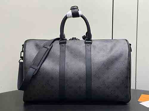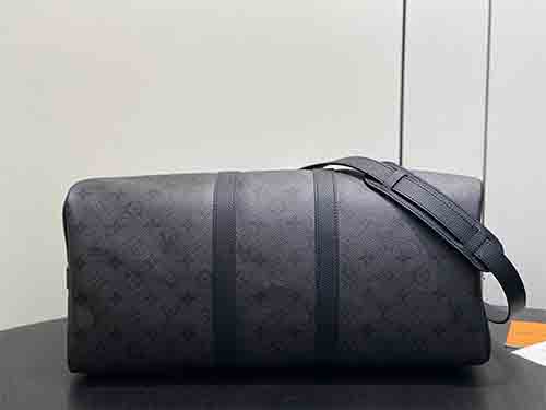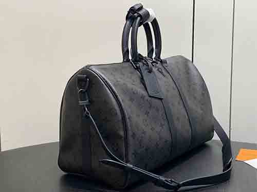 The Keepall Bandoulière 45 Travel Bag in Monogram Midnight reinterprets Louis Vuitton’s iconic travel heritage with a refined, understated aesthetic. Crafted from coated Monogram Midnight canvas, the tonal pattern delivers a sleek and modern expression of the House’s signature motif. Matte metal hardware and fine-grain cowhide leather trim elevate the monochrome silhouette, while reinforced handles and a detachable, adjustable shoulder strap ensure effortless carrying. Designed for short trips