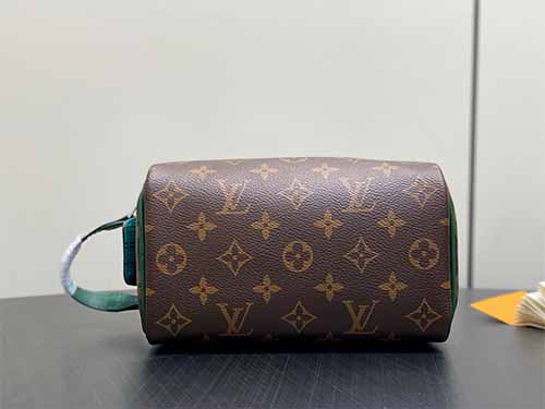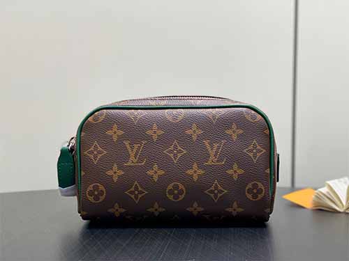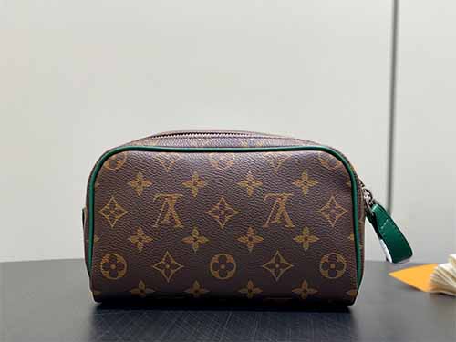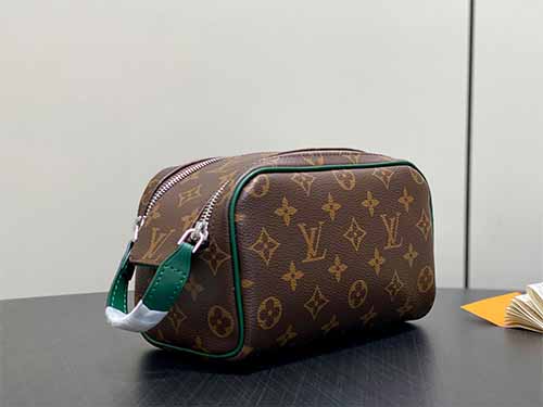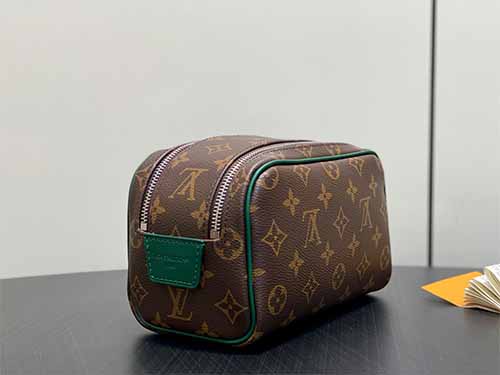 The Louis Vuitton Mini Dopp Kit Toiletry Bag M14911 combines iconic Monogram Heritage coated canvas with vibrant silk-printed patterns for a modern and refined travel accessory. Designed in a compact yet functional silhouette, this mini toiletry bag provides enough space for daily grooming essentials, cosmetics, and travel accessories. The double-zip wide opening ensures quick and convenient access, while the washable textile lining enhances durability and practicality. Finished with smooth
