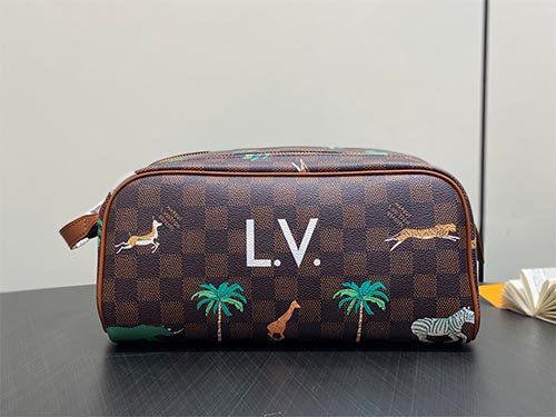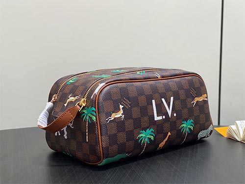 The Louis Vuitton Monogram Canvas Dopp Toiletry Bag embodies the timeless elegance of the House’s iconic Monogram design. Crafted from signature Monogram coated canvas with refined leather trim, this travel accessory combines durability with luxury aesthetics. The spacious interior compartment provides ample room for storing grooming essentials, while an interior zip pocket helps organize smaller items securely. A wide leather top handle offers comfortable carrying and can also be hung on hooks