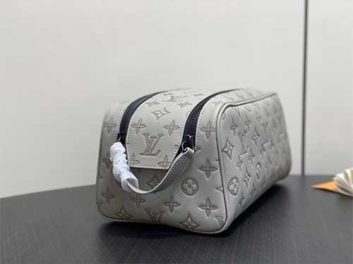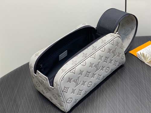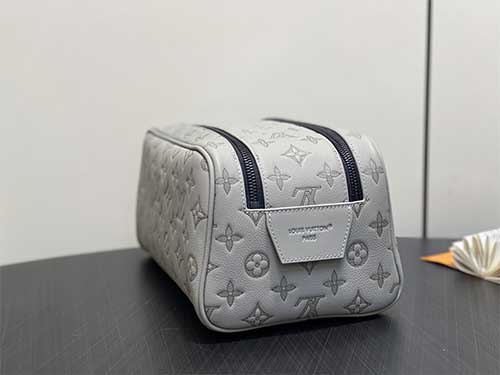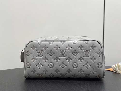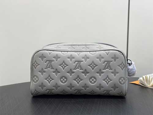 The Louis Vuitton Monogram Eclipse Leather Dopp Kit Toiletry Bag combines modern elegance with the iconic Monogram aesthetic. Crafted from premium embossed leather featuring the Monogram Eclipse pattern, this toiletry bag offers a subtle and refined look for Monogram enthusiasts. The elegant grey tone enhances the contemporary style while preserving the House’s signature craftsmanship. The spacious interior allows convenient storage for grooming essentials and travel accessories.