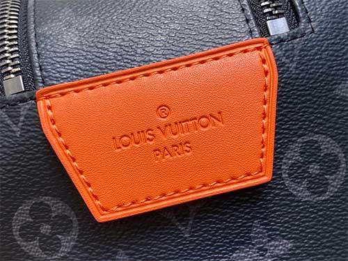 • Color: Black Monogram with orange leather trim