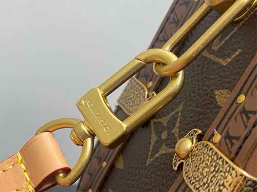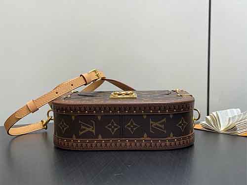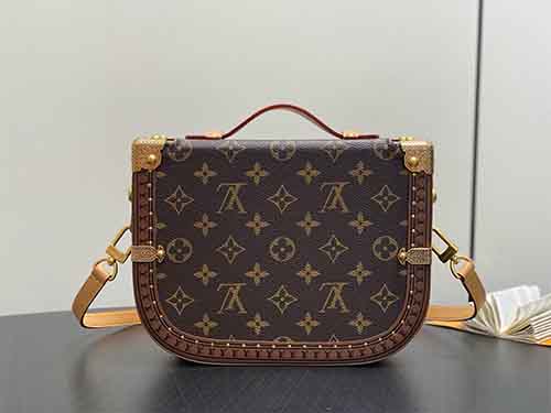 Inspired by Louis Vuitton’s iconic trunk-making heritage, the Montsouris Trunk handbag reinterprets classic travel codes with a refined, contemporary silhouette. Crafted from signature Monogram canvas, its rounded box shape offers a compact yet structured design that sits comfortably against the body. A flap closure, spacious main compartment, and top handle echo the spirit of vintage messenger bags, while the detachable shoulder strap allows for versatile styling—perfect for both daily wear