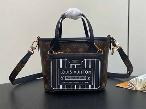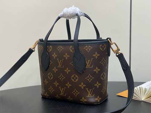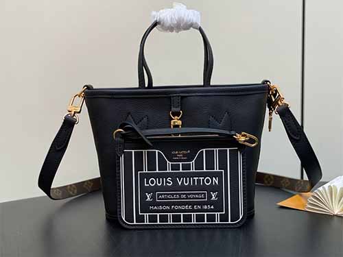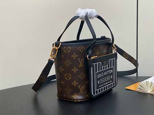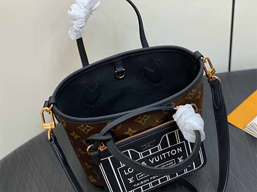 This season, the iconic Neverfull is reimagined with a reversible “Inside Out” design. The Neverfull Bandoulière Inside Out BB features signature Monogram canvas on one side and refined grained leather on the reverse, offering two distinctive looks in one compact tote. A detachable zipped pouch can be worn separately or attached externally as a functional pocket. Finished with gleaming gold-tone hardware and a removable shoulder strap,
