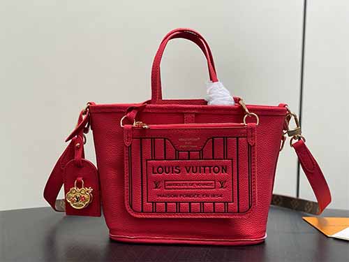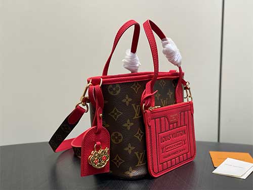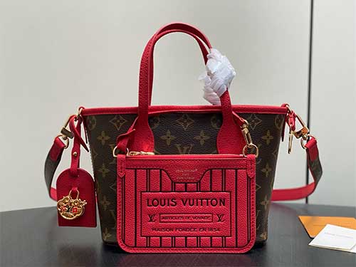 The Neverfull Inside Out BB is a seasonal reinterpretation of Louis Vuitton’s iconic tote, blending classic Monogram canvas with vibrant leather accents inspired by Lunar New Year celebrations. Designed with a reversible construction, this compact tote offers two distinct looks in one elegant piece. The detachable zipped pouch enhances practicality, while the LV padlock and name tag add a festive, collectible touch. Lightweight yet functional