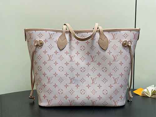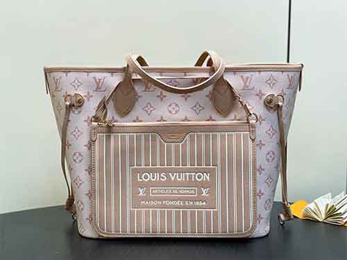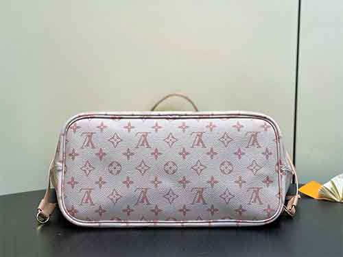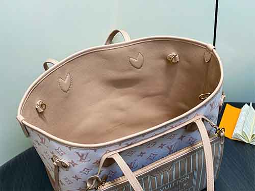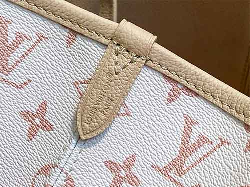 The Neverfull Inside Out MM is a versatile companion designed for both workdays and weekend travel. Featuring a reversible construction, one side showcases Monogram Dune canvas while the reverse is crafted in smooth hazelnut-toned leather. Its spacious interior comfortably accommodates a laptop and daily essentials. Adjustable side laces and hooks allow the opening to be modified, while a detachable zipped pouch offers secure storage for smaller items.