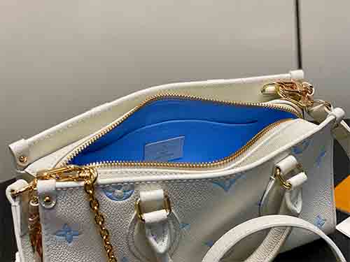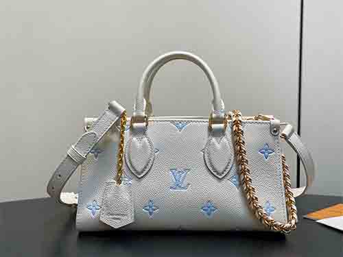 The OnTheGo East West bag from the Monogram Empreinte Outline collection introduces refined seasonal elegance through a sophisticated two-tone palette. Crafted from supple embossed leather, this compact silhouette is elevated with a detachable glossy woven chain and charming removable accessories. Thoughtfully designed interior compartments ensure effortless organization of daily essentials, while multiple carrying options allow seamless transitions from day to night.