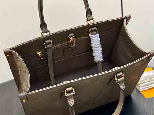 The OnTheGo Medium Tote Bag reinterprets Louis Vuitton’s iconic Monogram through a refined embossed leather construction. Crafted from soft, grained cowhide, the Monogram motif is printed and then embossed to create depth and tactile elegance. Designed for modern urban life, the spacious interior comfortably fits a laptop and daily work essentials, while dual top handles and long shoulder straps offer versatile carrying options for business and everyday use.