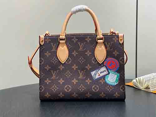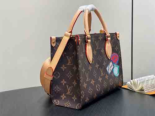 The Mon Monogram OnTheGo PM bag reinterprets Louis Vuitton’s iconic Monogram canvas through a personalized and playful lens. Part of the Mon Monogram JM collection, this compact tote allows for custom patches, stripes, and initials, creating a one-of-a-kind expression of style. Designed with Toron leather top handles and an adjustable leather shoulder strap, it offers versatile carrying options for modern urban life. A refined blend of heritage craftsmanship and contemporary individuality.