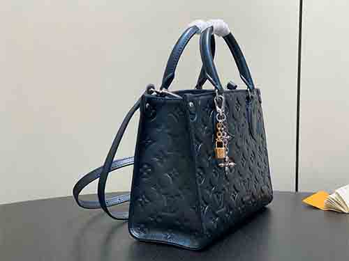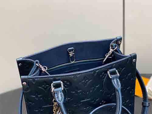 Inspired by the enchanting glow of winter nights, the OnTheGo Tote PM “Shimmering Ink” edition elevates the Maison’s iconic design with a refined pearlescent finish. Crafted from Monogram Empreinte leather embossed with LV initials, the bag features a luminous sheen and a removable tricolor metal charm, echoing Louis Vuitton’s travel heritage. Its structured silhouette and spacious interior make it ideal for daily work essentials, blending elegance with modern functionality.