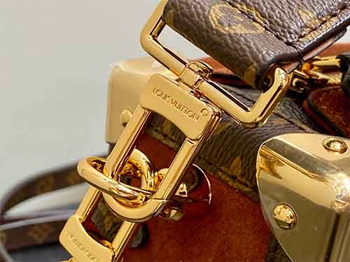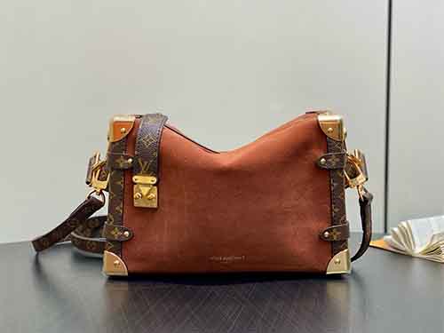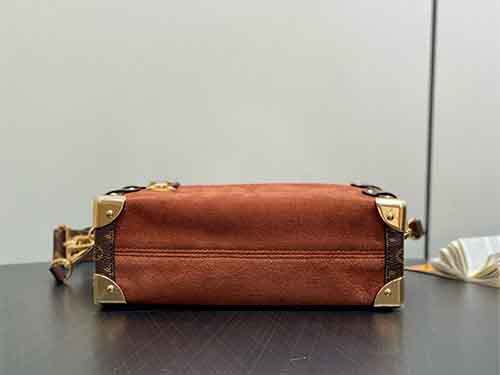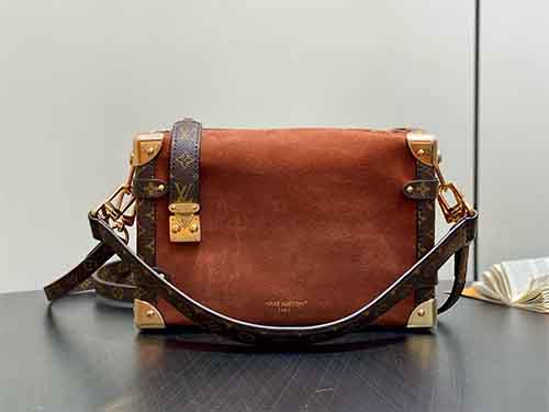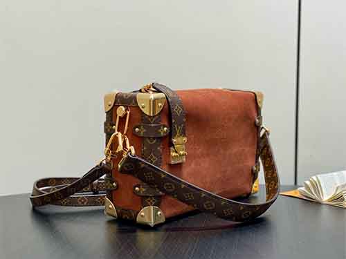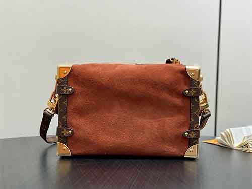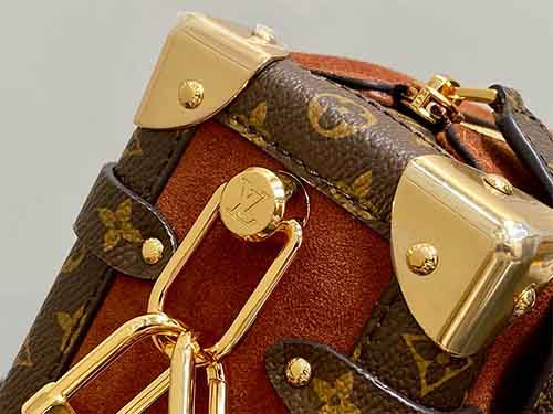 Inspired by the refined retro aesthetics of the 1970s, the Side Trunk Medium bag from Louis Vuitton’s Back to School Collection blends vintage elegance with contemporary versatility. Crafted in soft suede leather and accented with Monogram-coated canvas trims, this piece channels the Maison’s iconic trunk-making heritage through modern proportions. The signature S-lock closure, metallic corner details, and detachable chain strap elevate its character, offering a stylish yet practical companion