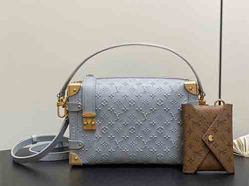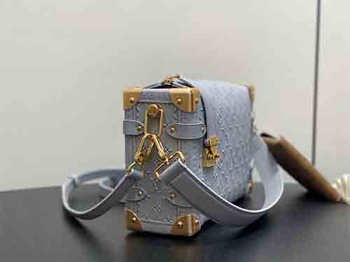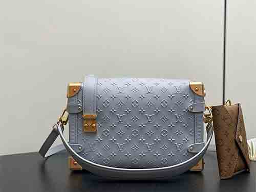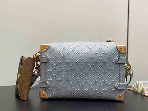 The Side Trunk MM bag reinterprets Louis Vuitton’s iconic trunk heritage through a contemporary lens. Crafted from supple cowhide leather, it features a subtle embossed Minigram Bold motif, paired with refined metal hardware that pays homage to the House’s historic craftsmanship. A contrasting Monogram card pouch references Nicolas Ghesquière’s debut invitation, adding a collectible and artistic touch. Designed for versatility,
