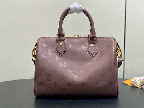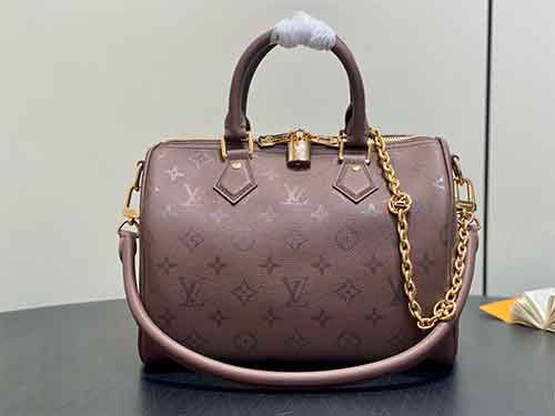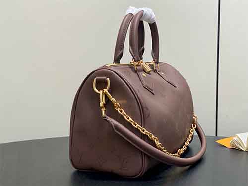 The Speedy Bandoulière 25 from the Bliss series is crafted in supple calf leather, delivering a distinctive pillow-soft texture paired with a refined, modern silhouette. The House’s iconic Monogram motif is reimagined through advanced triple digital printing, creating subtle depth and a smooth visual finish. A jewel-like Monogram floral chain adds a luminous accent, making this bag a versatile statement for everyday luxury.