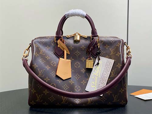 The Speedy Soft 30 Dark is designed to stand out as a bold yet refined travel companion. Crafted from the House’s iconic Monogram coated canvas, it is elevated with black leather trims and striking Gothic-inspired chain accents. The generously sized silhouette balances elegance and practicality, featuring a removable name tag, decorative tassels, and a secure interior zip pocket for passports and essentials. Updated Toron shoulder handles add a contemporary finish,