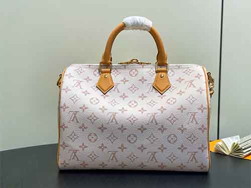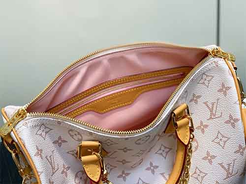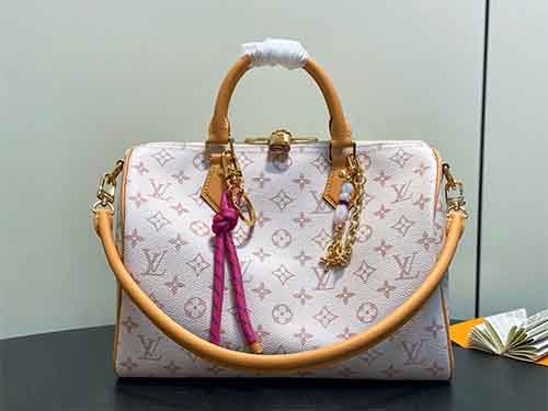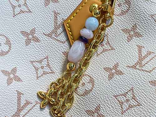 The Speedy Soft 30 Lucky bag reimagines the iconic Speedy silhouette with a contemporary, fashion-forward spirit. Crafted from Monogram Dune canvas with refined VVN leather trim, this seasonal design is elevated by jewel-like embellishments, knotted cords, contrast lining, and polished metal hardware. Its soft structure and spacious interior comfortably accommodate a tablet and daily essentials, making it both practical and expressive. Designed for modern lifestyles